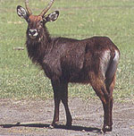 It has a distinctive white rump (the common waterbuck has a bulls-eye white rump; the defassa waterbuck has an all-white rump). This white rump is used by the mother to signal the calf to follow.